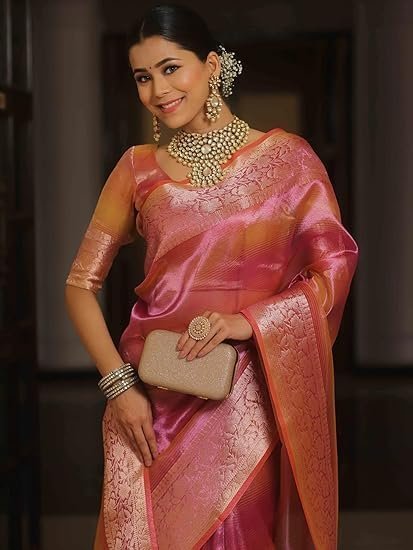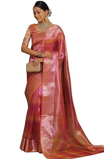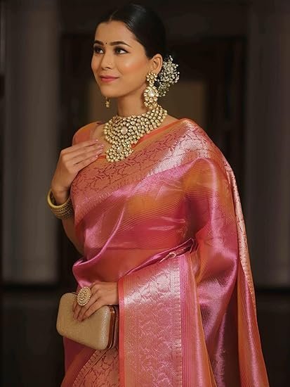 SareeAMIRAT Handwoven Banarasi Tissue Silk Saree in Two Toned Shaded Designer Wedding Saree