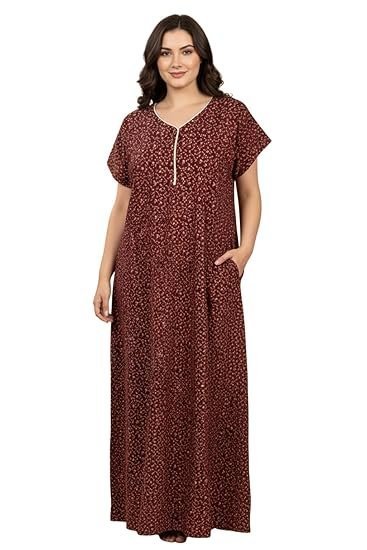 • Free-Size S-XXL – One pattern fits bust 32-46 in making it a free size maxi; Side pocket make it a high utility cotton nighty for women, doubling as women’s sleepwear or cotton maxi gown for women relaxing at home