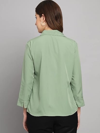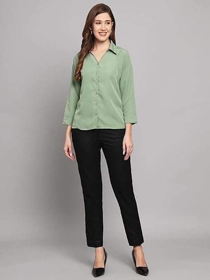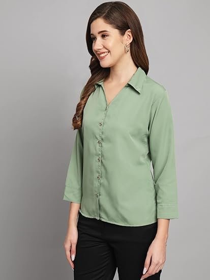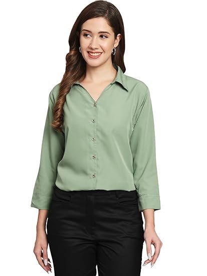 Women Cloth'sFUNDAY FASHION Women’s Crepe Regular Fit Solid V Collered Casual Shirt