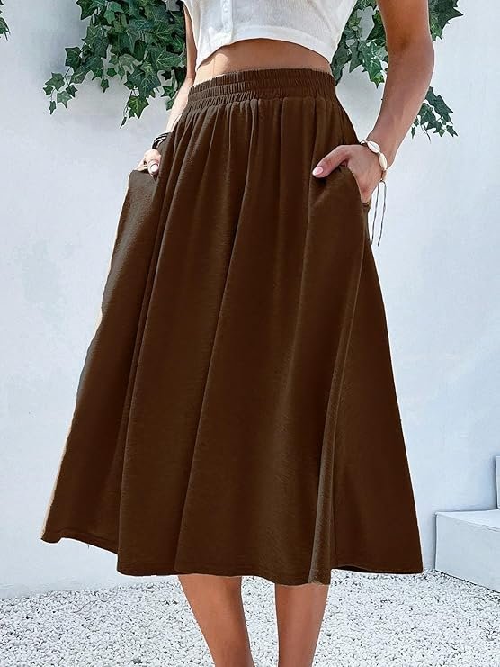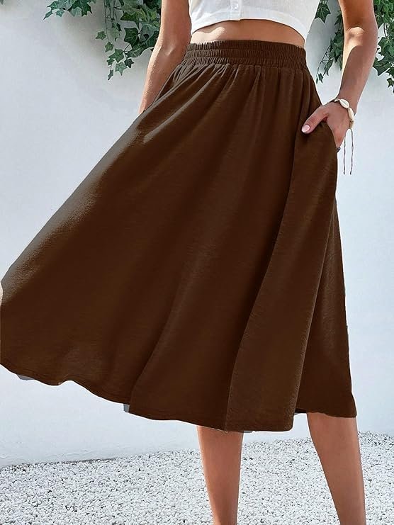 KATECLO Women’s midi Flared Skirt | Western Summer Wear | Lightweight Soft Fabric | Casual Maxi Skirt