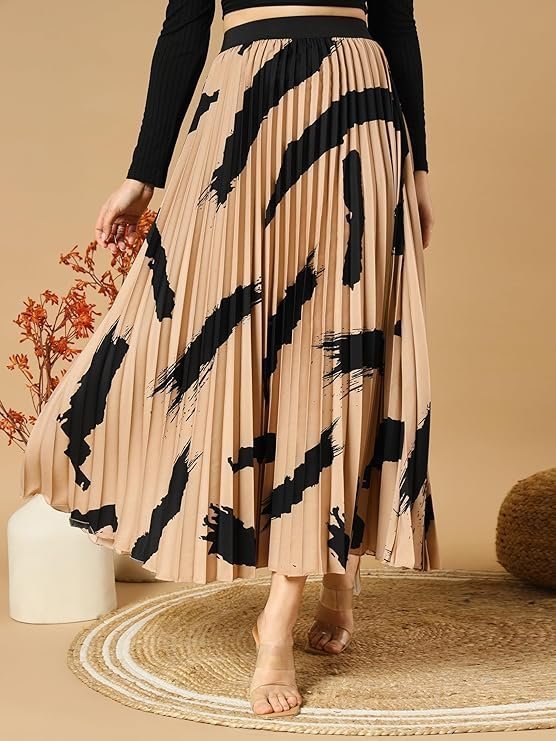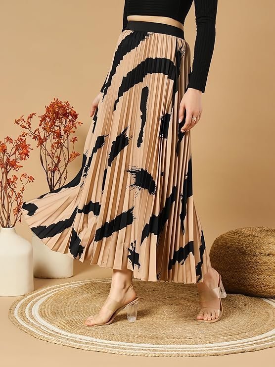 • Stylish Maxi Skirt: This pleated maxi skirt features a beautiful feather print pattern, perfect for adding a touch of elegance to your wardrobe.