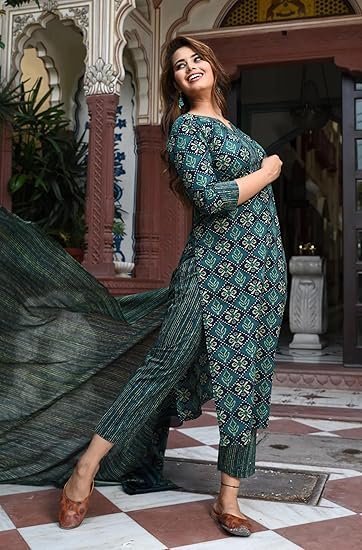 • Generic Name ‏ : ‎ Printed Cotton Blend Straight Kurta Pant Dupatta Set – Stylish Ethnic Wear for Women