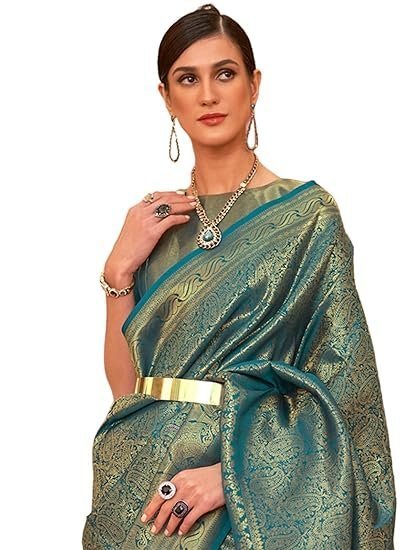 • MADHUHANSH Women’s Kanjivaram Woven Silk Banarasi Saree redefines luxury with its exquisite craftsmanship and enduring allure.