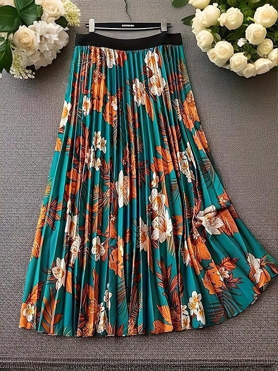 OTABU | Skirt for Women | Beautiful Colorful Printed | Stylish Pleated A-Line Design | Flexible Elastic Waist | Lightweight Fabric | Perfect for Any Occasion