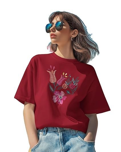 Be the first to review “Rocky Fab | Floral Embroidered Loose Fit T-Shirt for Women, Cotton Blend, Short Sleeve, Office Wear Comfy T-Shirts for Women’s”