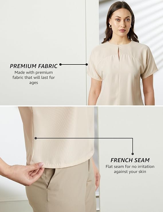 • Create a flattering desk-to-dinner ensemble by pairing this stylish top with trousers and pumps, effortlessly blending style and versatility for any occasion