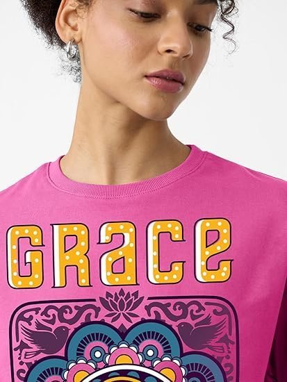 - Material: 100% Cotton, Fabric: Cotton, Color: Pink, Neck: Round Neck, Fit: Oversized, Sleeve: Half Sleeve, Pattern: Graphic Printed, Closure: Pull On,