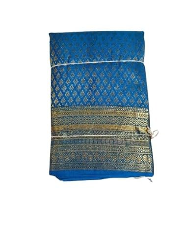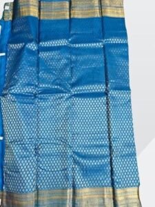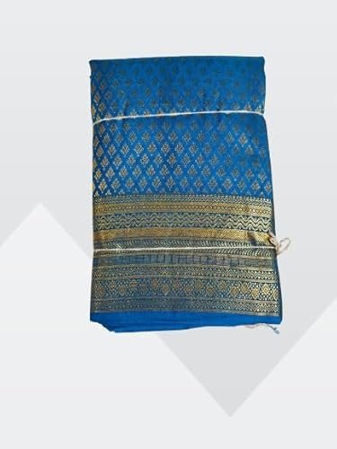 - MATERIAL: Pure silk saree featuring an exquisite royal blue base colour with intricate golden zari work throughout