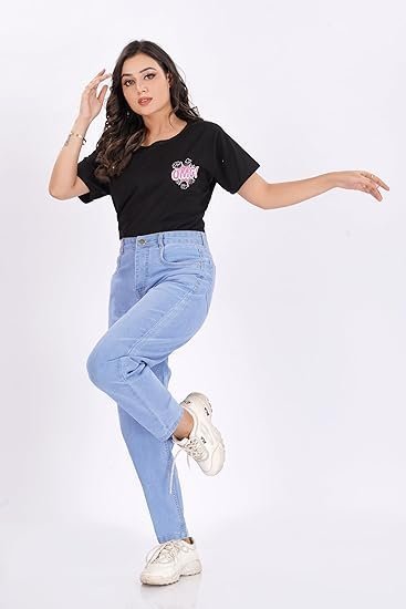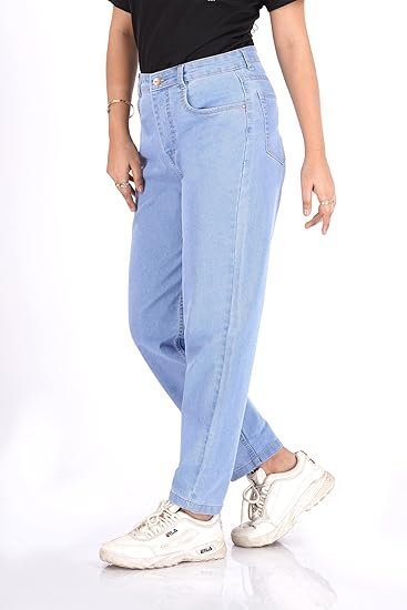 Women’s Mom Fit Jeans I Denim Ankle Length Stretchable Pant with Curved Pocket I Clean Solid High Waist Loose Fit Pants I Stylish & Trendy Look I for Office Party Home Girls & Women