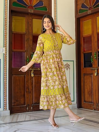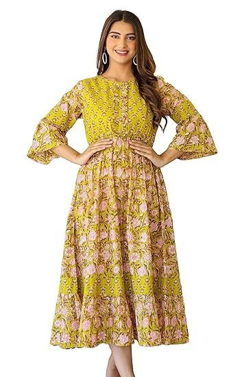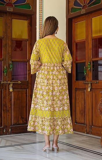 Yash Gallery Women’s Cotton Floral Printed Anarkali Maxi Dress