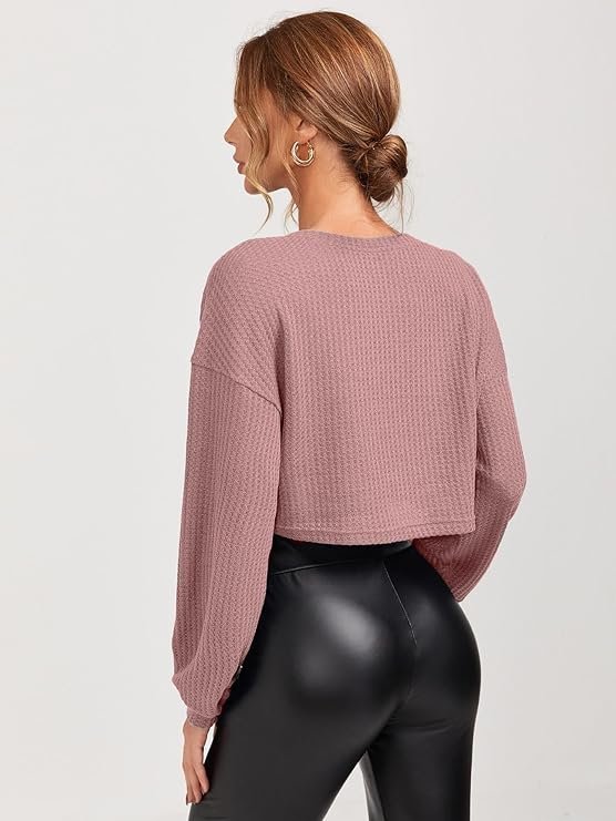 Zilcon Womens Waffle Long Sleeve 2025 Fall Fashion V Neck Basics Crop Tops Slim Fitted T Shirts Going Out Crop top for Women Stylish Western Tops